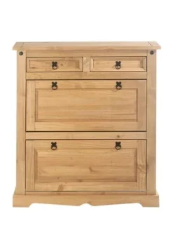 Der Schuhschrank COLMAR ist aus massivem Kiefernholz gefertigt und in der Farbe gebeizt oder weiß erhältlich. Entscheiden Sie, ob Sie den Schuhschrank mit 2,3 oder 4 Klappen wünschen, denn je nach Ausführung finden 12-20 Paar Schuhe ihren Platz. Der Schuhschrank ist im Landhausstil gefertigt und die Muschelgriffe sowie die beiden vorderen Kugelfüße runden den typisch natürlichen Look ab. Materialbeschreibung: Der Schuhschrank ist aus massivem Kiefernholz gefertigt und die Oberfläche ist gebeizt oder weiß lackiert. Die Lacke sind schadstoffarm und lösemittelfrei. Austattung / Merkmale des Produkts: mit 2, 3 oder 4 Klappen Platz für 12, 16 oder 20 Paar Schuhe bronzefarbene Muschelgriffe aus Metall 2 vordere Kügelfüsse Versand & Montage: Lieferumfang: Schuhkommode inklusive Aufbauanleitung Artikel wird zerlegt geliefert Kundenfreundliche Montage mit Hilfe der leicht verständlichen Aufbauanleitung Lieferung erfolgt ohne Dekoration Lieferung erfolgt per Paketdienst